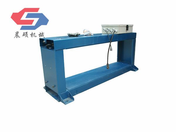 電磁除鐵器的基礎(chǔ)上增加了驅(qū)動(dòng)電機(jī)、滾筒、帶刮板的缷鐵膠帶等組成的缷鐵機(jī)構(gòu)。在工作過(guò)程